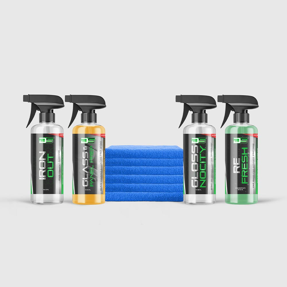 Glossnocity ceramic coating kit offers one year protection and everything you need for proper preparation and application. This kit includes Iron Out, our new scentless formula, Glass and Panel Prep, Refresh ceramic wash for wash maintenance, and 6 microfiber towels.