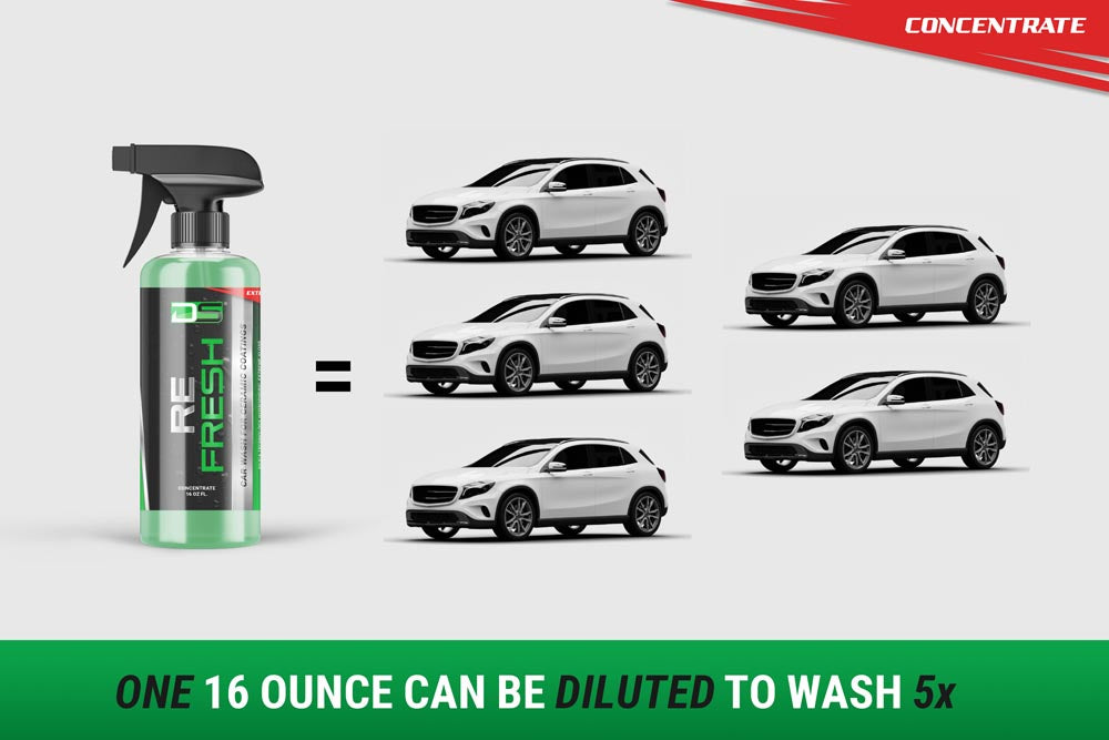 - Bucket Wash: Add 1-3 oz of REFRESH Ceramic Wash into a 5-gallon bucket filled with water to create a rich foam that will clean and protect your vehicle's surface.